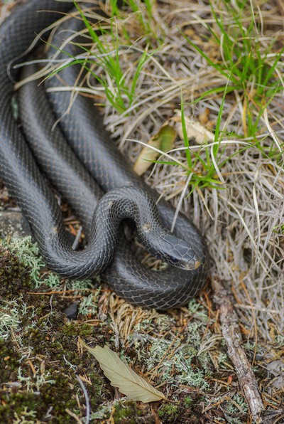 Day-active, Racers prey on many animals from other snakes to birds and mammals. In turn, they are common food items for larger mammals. Dedicated hawk watchers at Mt. Tom and elsewhere often report a “large black snake” dangling from the talons of some migrating raptor each autumn. Most likely it is a black racer.